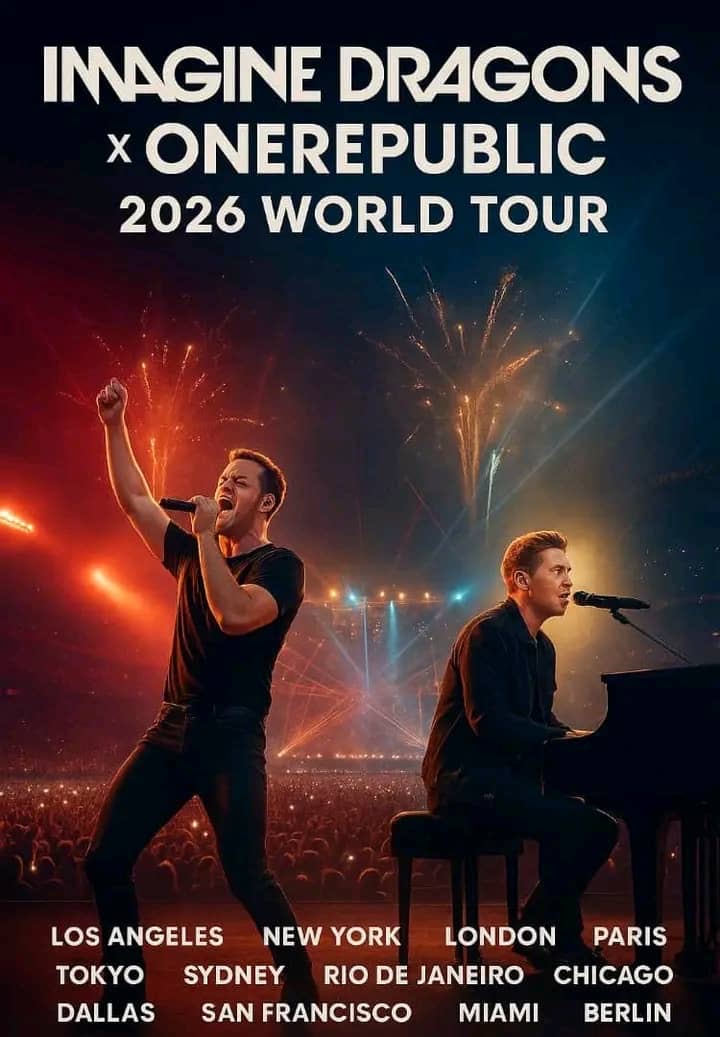 The 2026 “Two Giants, One Stage” tour by Imagine Dragons and OneRepublic is set to be an unforgettable chapter in contemporary music history. Combining their talents, energy, and messages of hope, the bands are poised to set the world ablaze—uniting millions of fans across the globe in a celebration of music, unity, and inspiration.