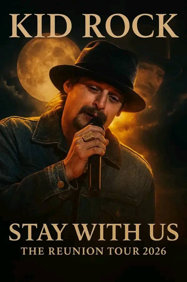 Tickets for the “Stay With Us: The Kid Rock Reunion Tour 2026” go on sale next week, with presale options available for fan club members and early supporters. Fans are encouraged to visit Kid Rock’s official website and social media channels for updates, exclusive behind-the-scenes content, and special package deals.