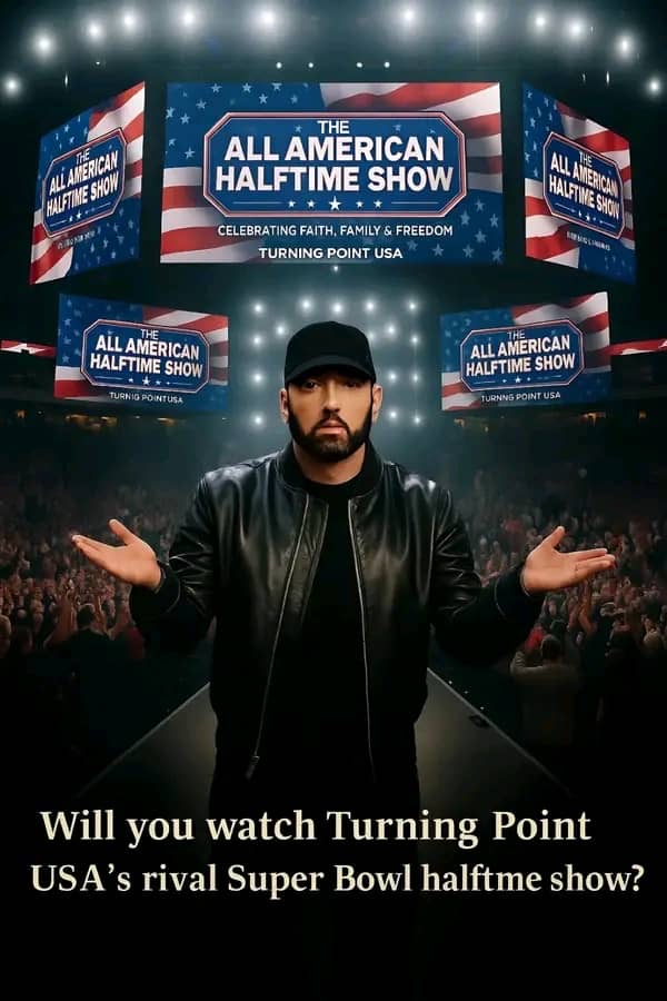 In an unprecedented move that’s sending shockwaves across the nation, rap legend Eminem has officially confirmed his participation in “The All-American Halftime Show,” set to air opposite Super Bowl 60. Organized by Turning Point USA and hosted by Erika Kirk, widow of the late Charlie Kirk, this extraordinary event is rapidly becoming a cultural phenomenon — a bold declaration of faith, family, and freedom in the heart of America’s most watched sporting event.