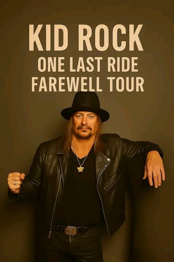The *“One Last Ride”* tour will feature over 40 dates, with the first show slated for Ford Field in Detroit on August 10, 2026. The tour will then make stops in major cities including Los Angeles, New York, Chicago, London, Berlin, and Sydney. Each concert promises an explosive mix of hits, deep cuts, and surprises, all delivered with Kid Rock’s signature energy and flair.