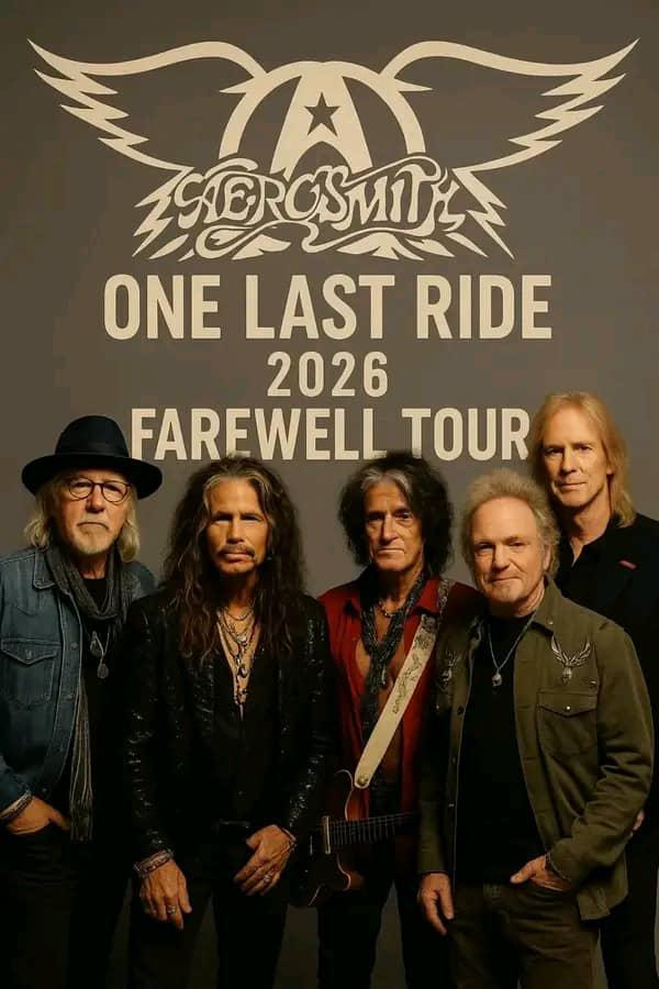 In a moment that’s sending shockwaves through the music world, legendary rock band Aerosmith has officially announced their farewell tour for 2026. Dubbed “One Last Ride,” this final trek promises to be a spectacular send-off for one of the most influential and enduring bands in rock history. After over five decades of chart-topping hits, electrifying performances, and shaping the sound of rock and roll, Aerosmith is stepping away from the stage, leaving behind a legacy that will inspire generations to come.