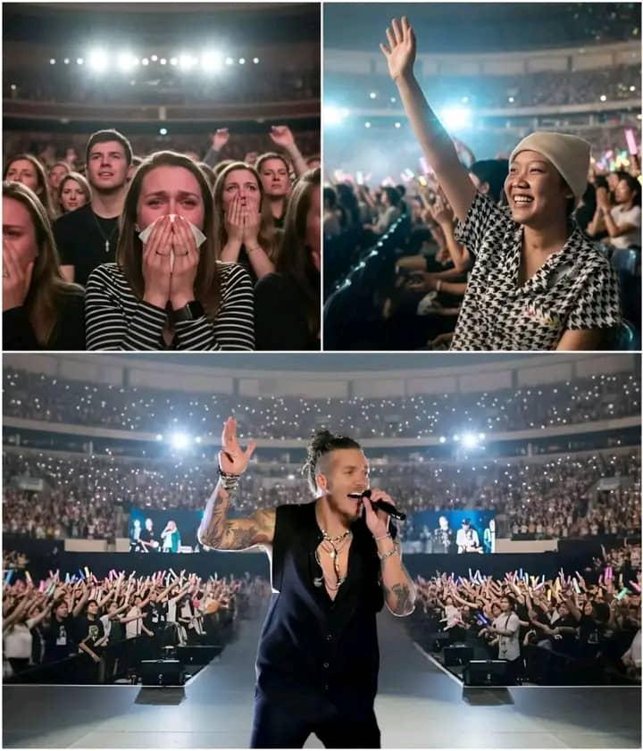 Midway through “Gratitude,” Brandon’s voice faltered—not from fatigue, but from overwhelming emotion. Tears welled up as he struggled to sing the next words, feeling the depth of what the song represented: a testament to divine goodness, a declaration of unwavering faith. The audience, sensing his vulnerability, responded with even greater fervor. Their voices swelled louder, more passionate, filling every corner of the arena with praise.
