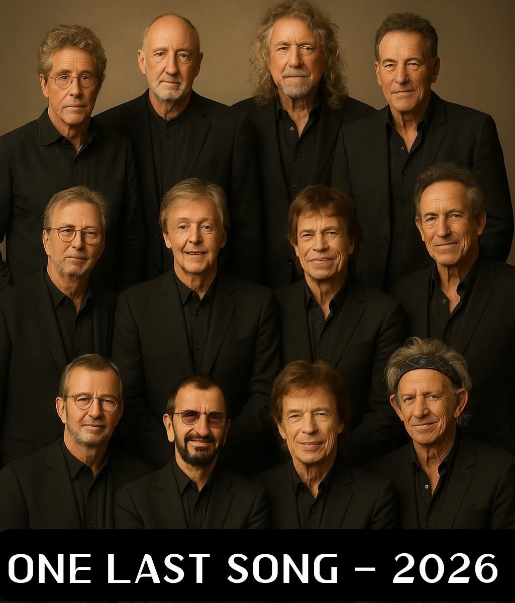 ONE LAST SONG — 2026: The Farewell That Will Define a Generation Twelve legends. One stage. One final goodbye. The unthinkable has become reality — Paul McCartney and Ringo Starr will reunite with Eric Clapton, Elton John, Mick Jagger, Keith Richards, Roger Daltrey, Pete Townshend, David Gilmour, Brian May, Robert Plant, and Bruce Springsteen for a once-in-a-lifetime tour unlike anything the world has ever seen..