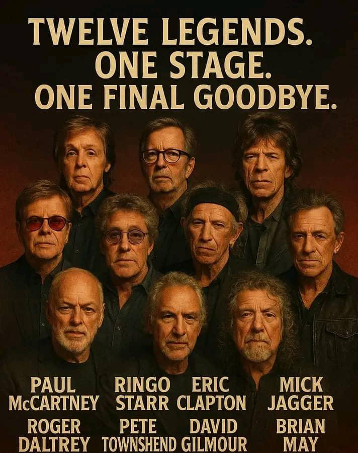 ONE LAST SONG — 2026: The Farewell That Will Define a Generation Twelve legends. One stage. One final goodbye. The unthinkable has become reality — Paul McCartney and Ringo Starr will reunite with Eric Clapton, Elton John, Mick Jagger, Keith Richards, Roger Daltrey, Pete Townshend, David Gilmour, Brian May, Robert Plant, and Bruce Springsteen for a once-in-a-lifetime tour unlike anything the world has ever seen..