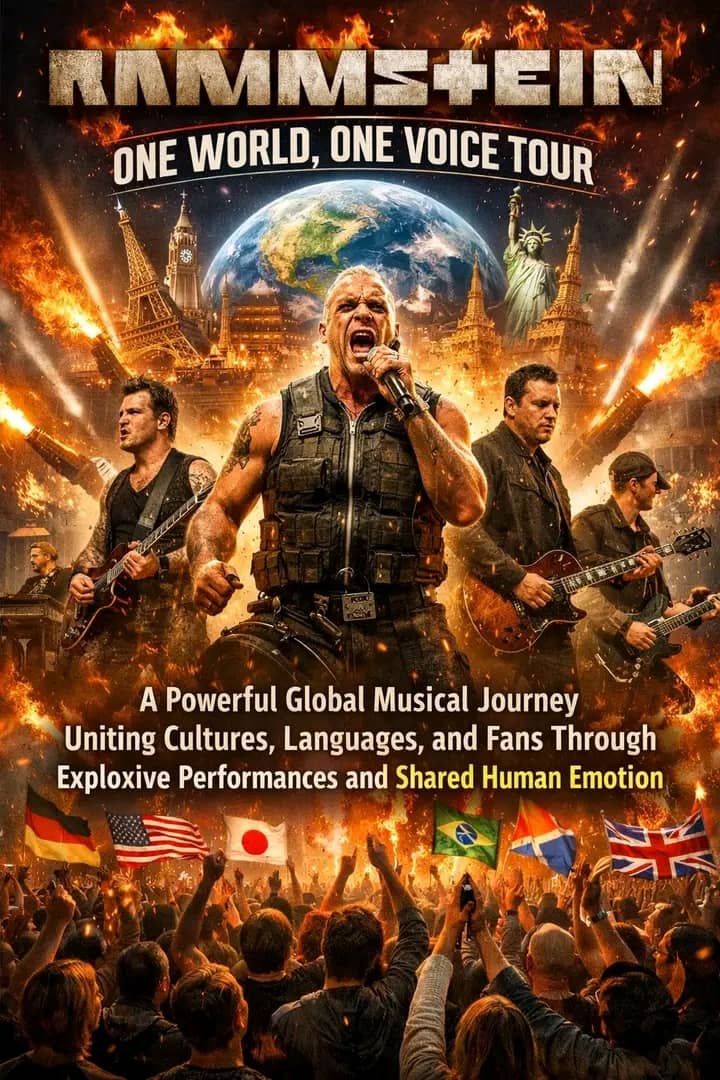 The world is burning once again—and at the center of the flames stands Rammstein. With the thunderous announcement of their “One World, One Voice” World Tour, the German industrial metal titans have made it clear: this is not just another concert run. This is a global event, a cultural collision, and a sonic uprising that turns music into a shared human force.