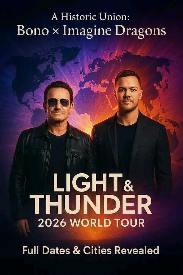 Rock meets modern anthemic energy in a collaboration the world never saw coming. In a groundbreaking announcement that has electrified music fans across continents, U2’s Bono and award-winning global powerhouse Imagine Dragons have officially confirmed a massive joint 2026 world tour — a fusion of two generations, two iconic voices, and one unstoppable mission: to unite millions through music, hope, and unforgettable live spectacle.