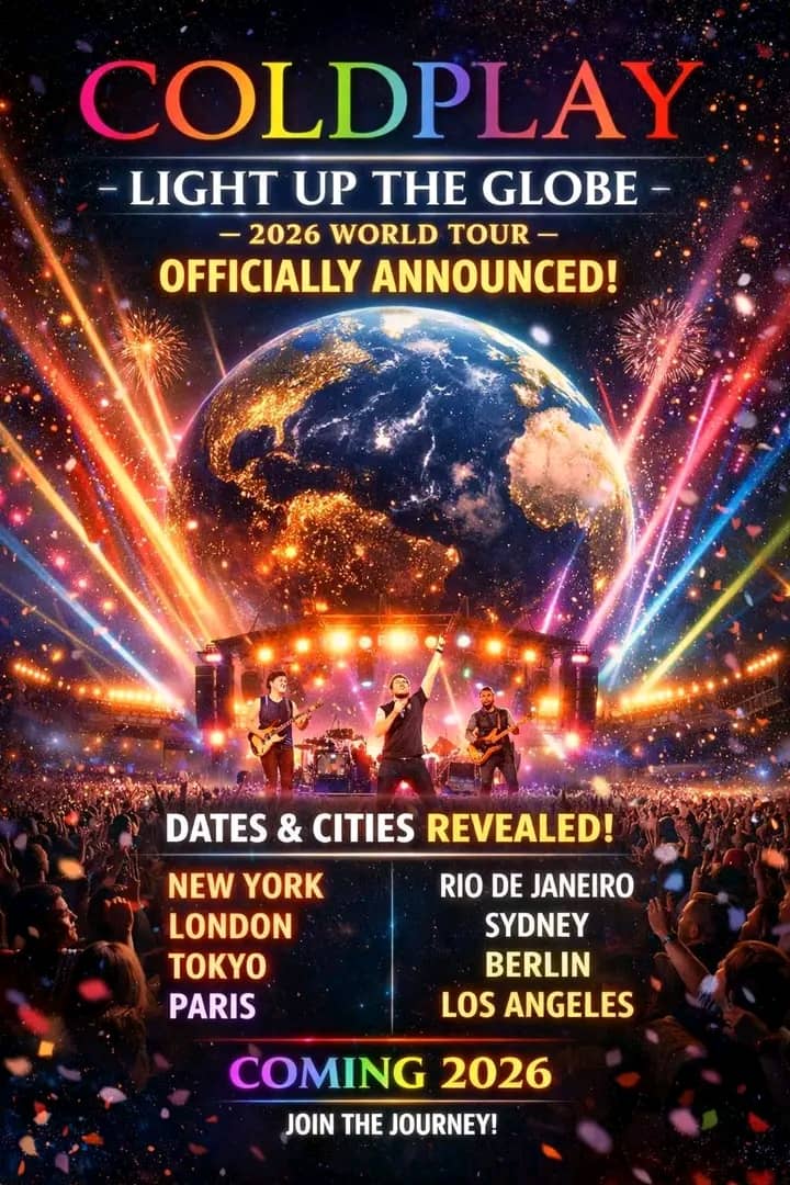 Coldplay are ready to illuminate the world once again. The global music icons have officially announced their 2026 World Tour, fittingly titled “Light Up the Globe,” and fans everywhere are already counting down. Known for turning live shows into emotional, colorful, and unforgettable spectacles, Coldplay’s latest tour is shaping up to be one of the most ambitious and inspiring musical journeys of the decade.