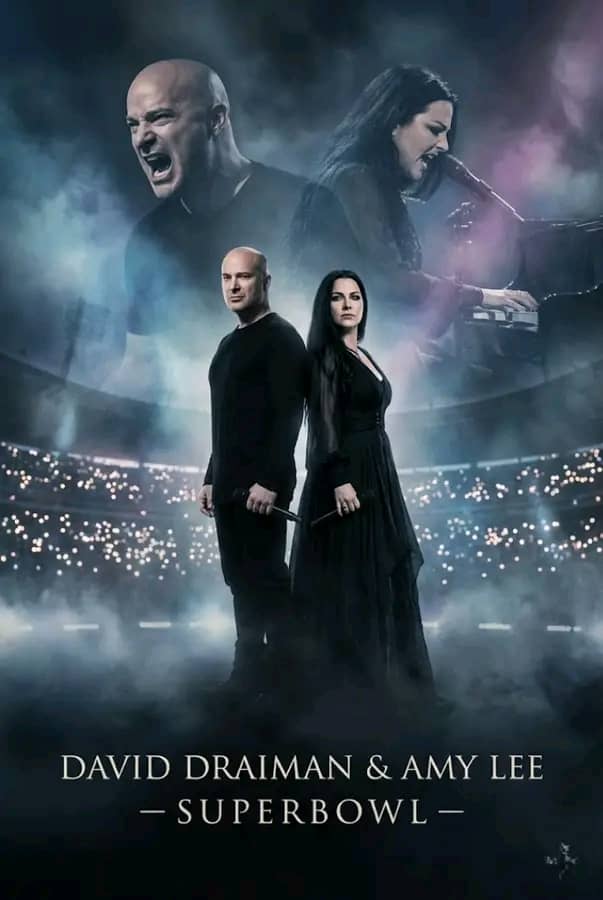 The Super Bowl, known globally for its exhilarating football action, has also become a cultural phenomenon, especially for its halftime performances. Past shows have featured some of the biggest names in music, but this year’s edition promises to eclipse all expectations. David Draiman, the commanding voice behind Disturbed, and Amy Lee, the hauntingly beautiful singer of Evanescence, have long been admired for their powerful vocals, emotional depth, and genre-defining sounds. Their collaboration represents a perfect convergence of rock’s raw intensity with gothic elegance—a union that fans have dreamed of for years.