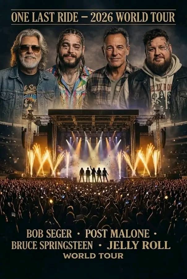 As the “One Last Ride” World Tour prepares to kick off, fans are reminded that this is more than just a tour — it’s a cultural event that captures the very essence of American music. Whether you’re a longtime fan of Bob Seger, a lover of Bruce Springsteen’s anthems, a follower of Post Malone’s chart-topping hits, or inspired by Jelly Roll’s emotional storytelling, this tour promises unforgettable moments.