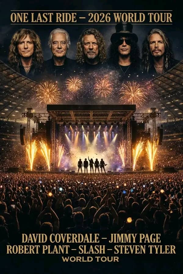 Rock fans worldwide are celebrating a historic moment in music history. The legendary voices and guitar gods of classic rock are coming together for a once-in-a-lifetime event: the *ONE LAST RIDE* World Tour. Announced with much fanfare, this massive global tour features an unprecedented lineup — David Coverdale, Jimmy Page, Robert Plant, Slash, and Steven Tyler — uniting to revive the raw, soulful energy of blues-rock and redefine the genre for a new generation. The announcement has sent shockwaves through the music industry, promising a tour that will go down in history as one of the most epic and electrifying in rock’s storied legacy.