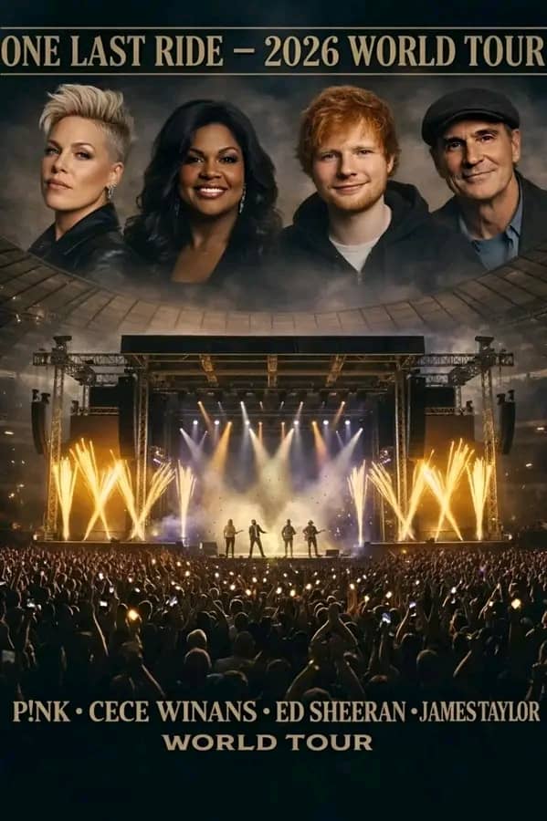 Music fans around the world are buzzing with excitement as one of the most spectacular tours in recent history has just been announced. The legendary “ONE LAST RIDE” world tour will feature an unprecedented lineup of some of the biggest names in the industry, including P!nk, CeCe Winans, Ed Sheeran, and James Taylor. This once-in-a-generation musical event promises to be a spectacular celebration of artistry, diversity, and musical excellence, set to light up stages across the globe in 2026.