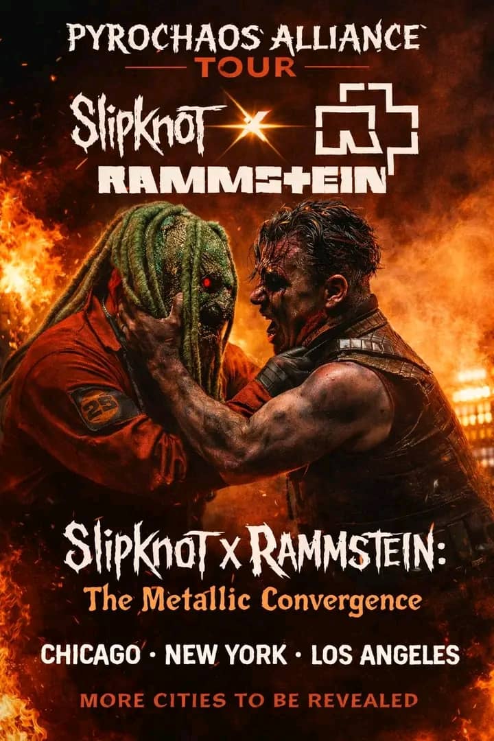 In an unprecedented move that’s sending shockwaves through the metal community, two of the genre’s most iconic and explosive acts—**Slipknot** and **Rammstein**—have announced a joint tour that fans never saw coming. Dubbed the **PyroChaos Alliance**, this legendary convergence promises to be a once-in-a-lifetime event, blending Slipknot’s chaotic intensity with Rammstein’s fiery theatricality into a colossal spectacle of sound and pyrotechnics. Here’s everything you need to know about this explosive collaboration that’s redefining metal tours.