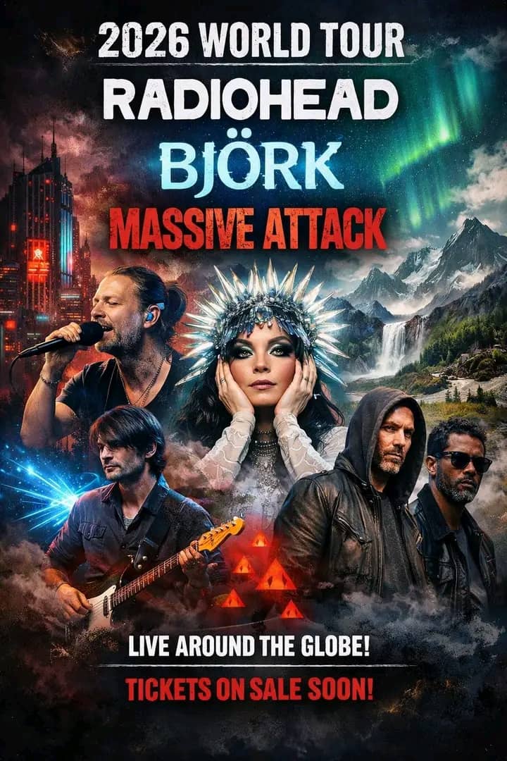 In a historic announcement that has sent shockwaves through the music industry, three of the most influential and innovative artists—Radiohead, Björk, and Massive Attack—have officially revealed their plans for a colossal 2026 world tour. This unprecedented collaboration will unite fans across continents for an extraordinary series of performances, blending their unique sounds, groundbreaking visuals, and revolutionary stage production. With tour dates and cities now confirmed, excitement is reaching a fever pitch as music lovers prepare for what promises to be one of the most significant live events of the decade.