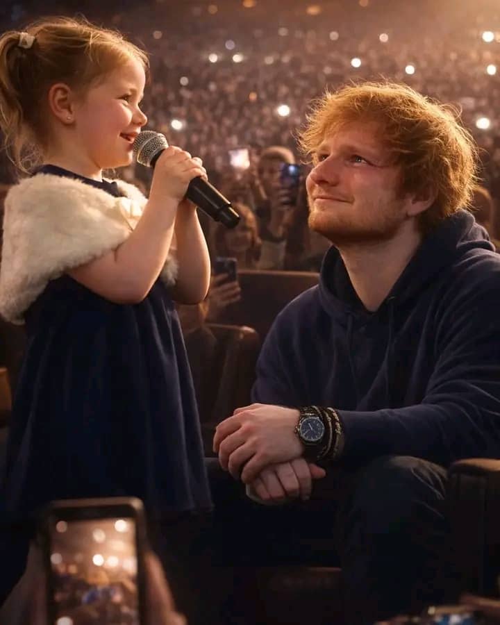 It all started when Ed Sheeran was mid-performance, pouring his soul into a song that had become an anthem of hope and resilience. Suddenly, from behind him, a tiny voice emerged—delicate but determined—singing his lyrics with a surprising confidence. The crowd, initially captivated by the performance, quickly sensed that something extraordinary was unfolding. Ed’s expression froze as he turned around, eyes widening in disbelief. Standing behind him was his young daughter, her small hands gripping a microphone, her eyes locked onto his with unwavering focus.
