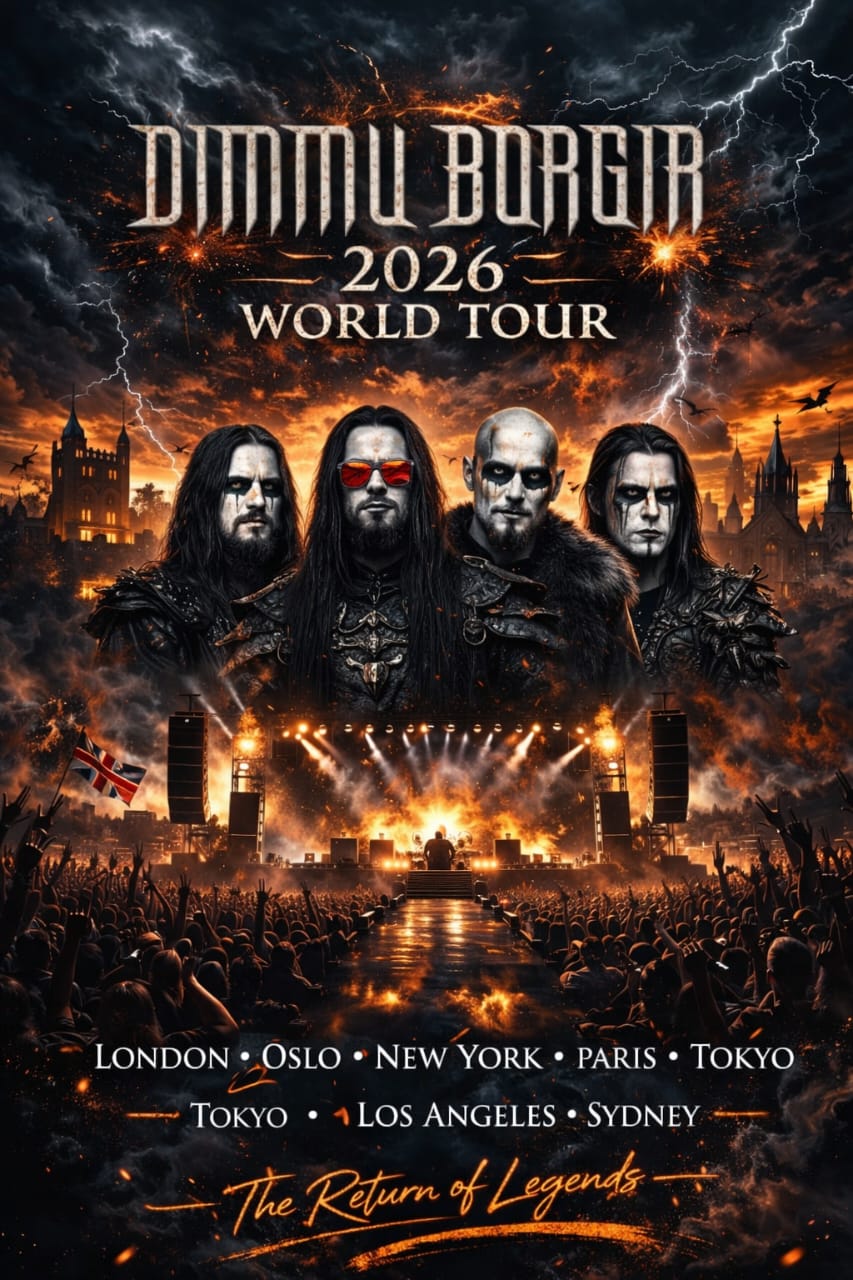 Fans of black metal and symphonic darkness, rejoice—the legendary Norwegian band Dimmu Borgir has officially announced their highly anticipated *”Infernal Shadows 2026 Tour,”* and it promises to be the ultimate rock revival of the year. Known for their atmospheric soundscapes, theatrical performances, and relentless energy, Dimmu Borgir is set to bring their intense live experience to stages across the globe. The full list of cities and dates has now been revealed, and this tour is shaping up to be a must-see event for metal enthusiasts worldwide.