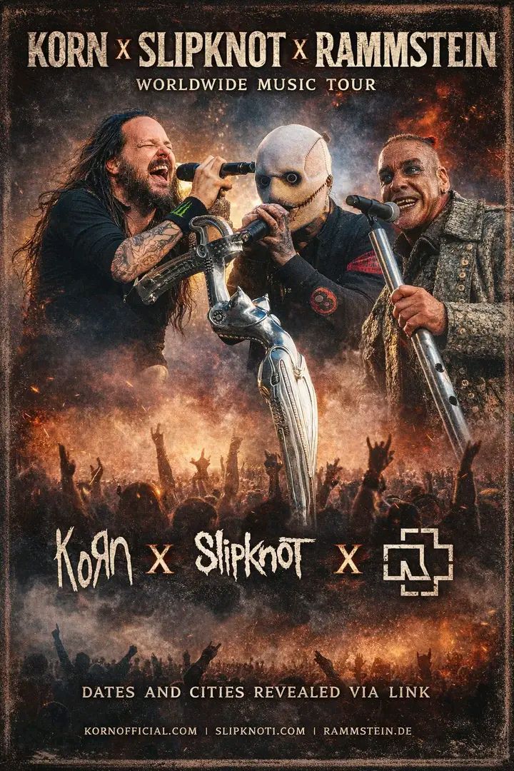 Metal fans worldwide, brace yourselves for the most explosive, jaw-dropping tour of 2026. Three of the biggest titans in heavy music—Korn, Slipknot, and Rammstein—are joining forces for a once-in-a-lifetime event that promises to shake your soul, ignite your senses, and redefine live metal experiences forever. This unprecedented tour brings together three iconic bands, each with their own distinct sound, stage presence, and loyal fan base, united for a spectacle that will leave audiences breathless. Here’s everything you need to know: the details, the dates, and the cities where this historic event will unfold.