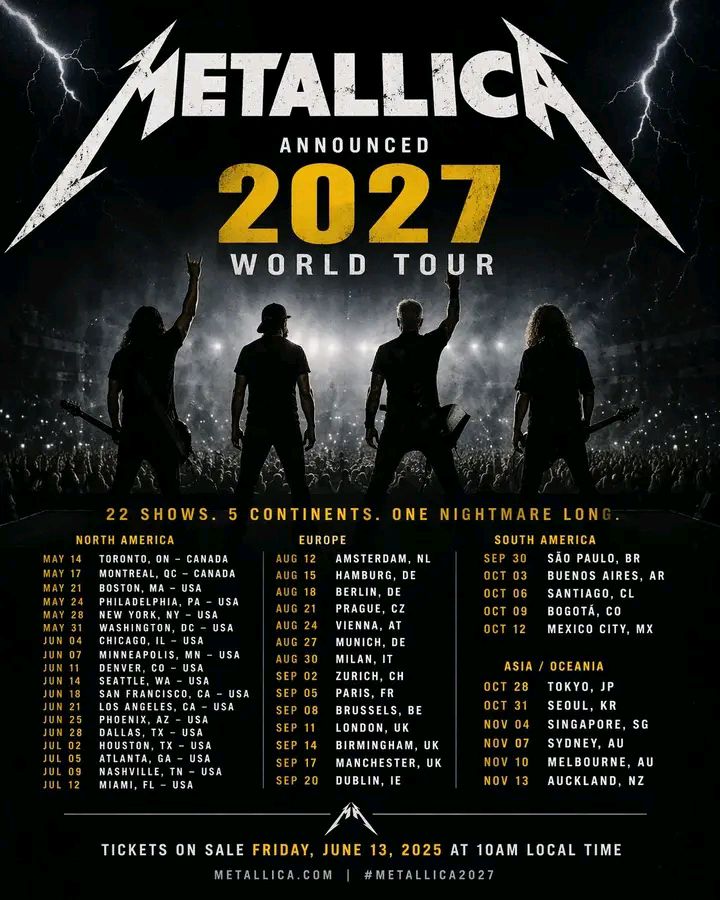 This is a once-in-a-lifetime opportunity to witness Metallica live on stage — a tour that will undoubtedly go down in history. Prepare yourselves for an epic worldwide journey that will mark a new chapter in the band’s legendary story.