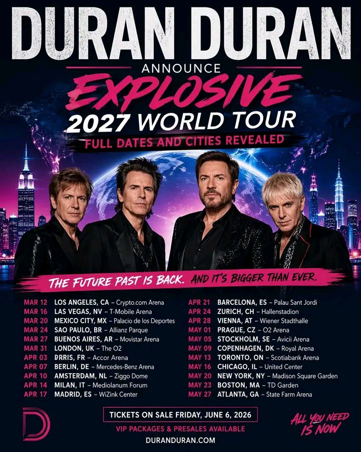Music fans worldwide are celebrating as legendary band Duran Duran officially announces their highly anticipated 2027 world tour. Titled **“Future Past Tour,”** this extensive global trek promises to be a spectacular showcase of their timeless hits, new material, and innovative stage production. With full dates and cities now revealed, fans are eager to secure their tickets for what promises to be one of the most electrifying tours of the decade.