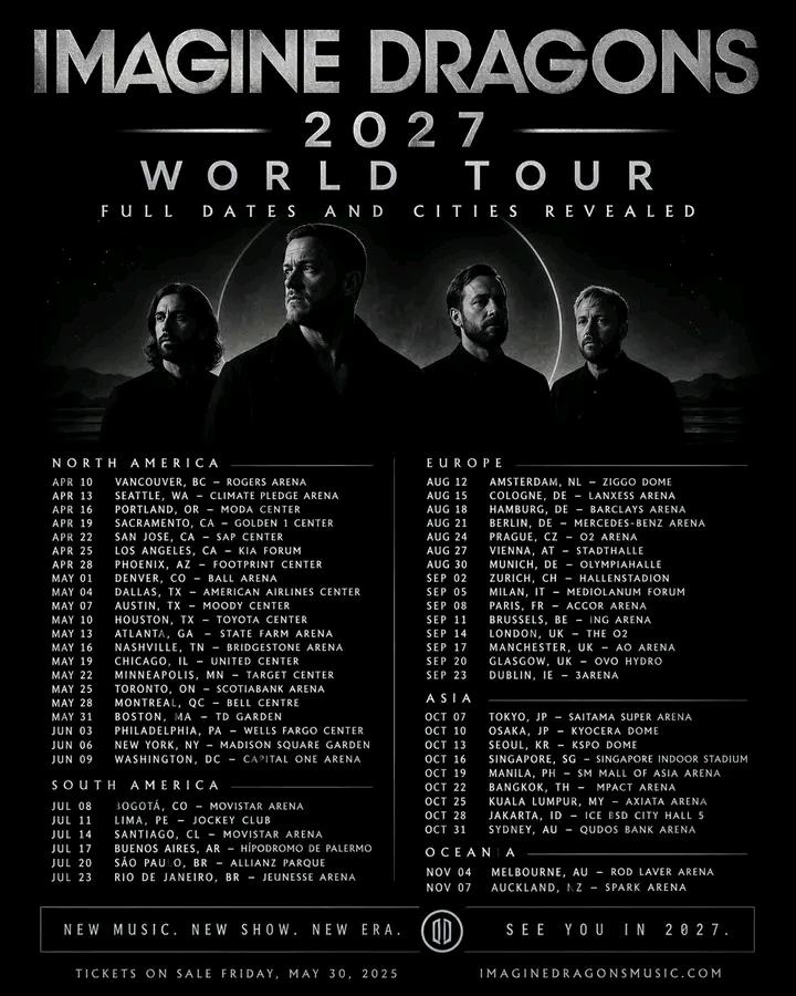 The **“Emerge and Ignite”** 2027 world tour is set to be one of the biggest musical events of the year. With full dates and cities now revealed, fans across the globe are preparing to secure their tickets and join in what promises to be an unforgettable experience. Mark your calendars, stay tuned for ticket release dates, and get ready to witness the power of Imagine Dragons live on stage—because this is a tour you won’t want to miss!
